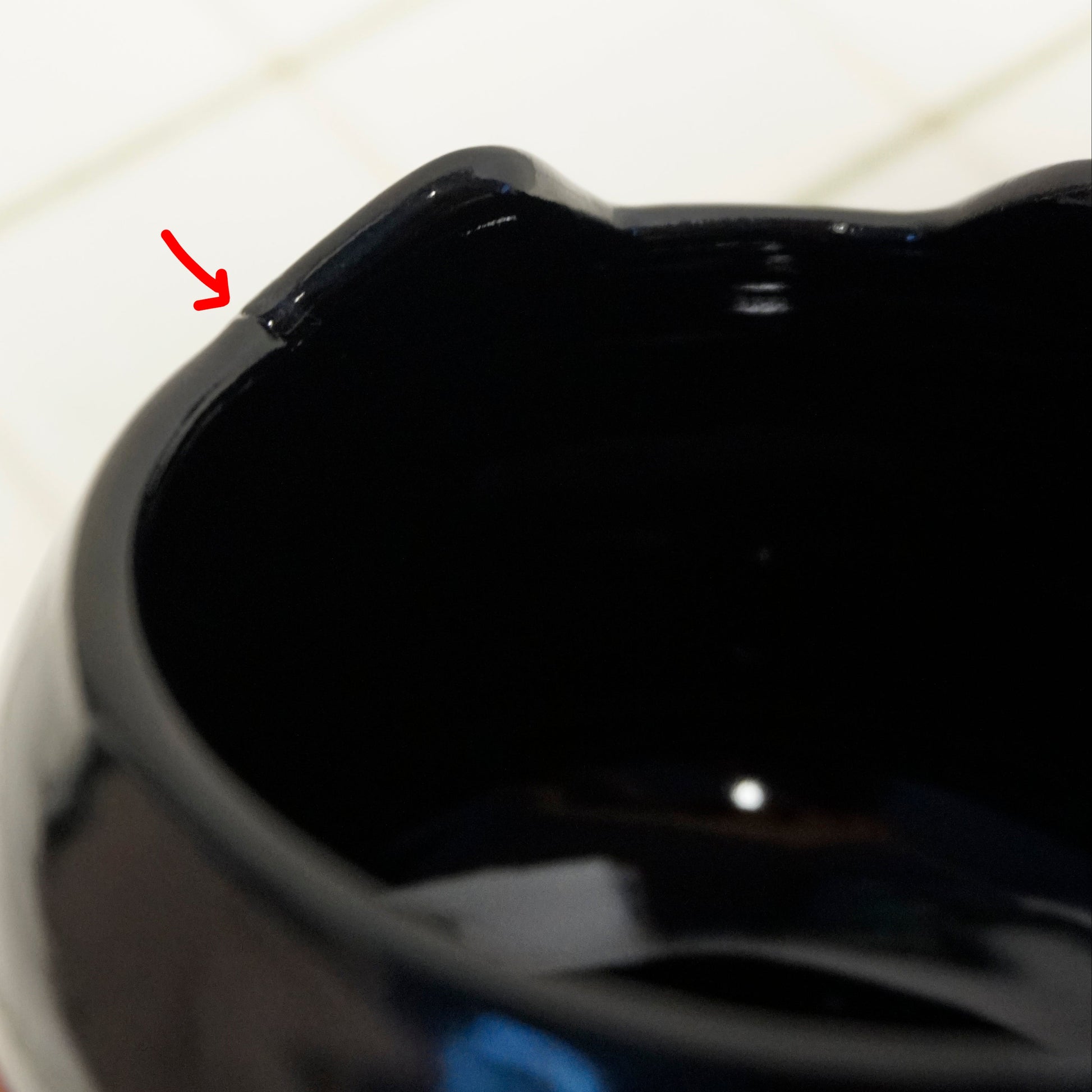 **seconds**: There are small cracks along the outer parts of each ear (hard to see in photos since the mug is black); this does not affect the mug's functionality.